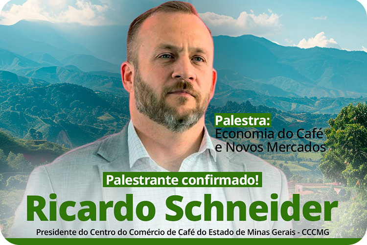O segundo palestrante confirmado é Ricardo Schneider, presidente do Centro do Comércio de Café do Estado de Minas Gerais (CCCMG), instituição que lidera desde 2023, atualmente em seu segundo mandato. Com uma trajetória sólida no setor cafeeiro, Ricardo integra o Grupo Tristão há 28 anos, tendo atuado em diversas áreas estratégicas, como classificação, logística e trade, e atualmente ocupa o cargo de gerente geral da unidade de Varginha.